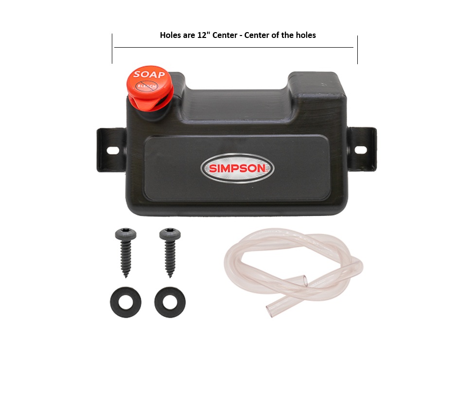 The Simpson pressure washer detergent soap tank 7116681 tank kit CRA is a component designed to facilitate the use of detergent or soap in conjunction with Simpson pressure washers. This tank kit is equipped with a reservoir for holding detergent or soap, allowing users to conveniently mix and dispense cleaning solutions during pressure washing tasks.